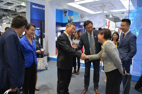本届进博会医疗器械及医疗保健展区一位难求,但是全球医疗器械最大企业美敦力占据醒目位置。11月6日,美敦力展位迎来国药集团董事长、党委书记刘敬桢,国药集团副总经理石晟怡,国药控股副总裁、国药器械总经理李杨一行。美敦力介绍了最新技术进展,现场展示了介入心脏起搏器、O型臂术中影像系统、脊柱手术机器人等高科技产品。7日下午,双方现场签署医疗器材产品采购“大单”。两大集团公司强强携手,为中国引进世界先进的医疗设备和器械,服务中国医疗卫生事业,为增进中国人民健康保驾护航。