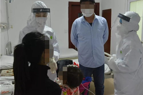 1月31日,国药东风总医院接到这个家庭的求助电话,考虑患儿年龄小,加上是家庭聚集性病例,院领导高度重视,紧急协调床位,腾出一间隔离病房把患儿和父母一同收治入院,组织专家全院会诊,对这家人进行精心治疗。