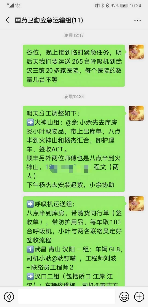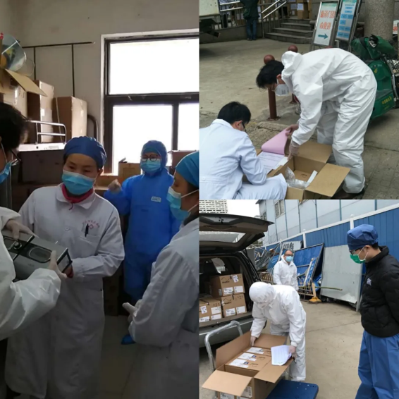 面对非常时期的非常任务,国药卫勤团队展现出了团结、坚守和实干的精神:卫勤领导班子迅速制定方案,规划路线车辆,组织物流人员;质量部经理叶丽娟、人力行政部经理李阳全天候值守库房,肩负起出入库物资清点统计的重担;公司党员任洪亮冲锋在前,日夜兼程从外地驱车数千里赶到武汉;新入职的员工耿钉嘴也主动请缨,连续两天奋战在运送一线;国药医工(湖北)团队连夜抽调出四名工程师,保障设备的安装调试。