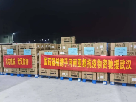 大年初一,国药器械、河南亚都联合捐助的290万件防护产品星夜兼程运抵武汉。