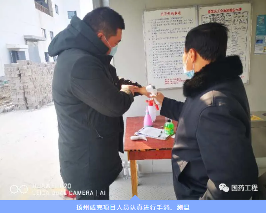 2月9日,扬州威克项目经理何正章积极响应公司提出的“早进场、早隔离、早复工”的要求,创造条件自驾车赶往项目现场,成为公司最早派人进驻施工现场的项目之一。在主动自我隔离14天的基础上,何正章按照当地疫情防控和复工条件要求,认真准备并提交项目复工申请报告,于2月21日,项目获得复工准许通过函。项目组严格落实疫情防控要求,积极采购储备防控物资;要求施工人员如实申报运动轨迹,建立一人一档;定时对项目现场主要部位进行消毒。同时扬州威克项目通过建立联络工作群、沟通帮助人员尽快返岗等多措并举确保项目现场有序推进。