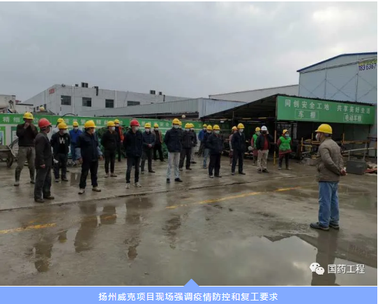 国药工程多个项目先后召开复工会,项目管理人员和各岗位人员积极努力,克服困难,陆续返岗奋战。截止到目前,成都蓉生项目、扬州威克项目、云南血制项目于2月下旬先后复工,上生所流感项目、威奇达项目、江苏物流项目、南阳物流项目也在科学有序推进复产复工。