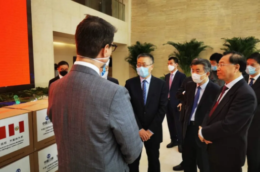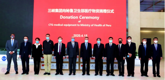 4月15日上午,国药集团董事长、党委书记刘敬桢,国药集团副总经理、国药国际董事长石晟怡,国药国际所属国药外贸总经理丁维佐,国药集团董事长秘书鲁保才等共同出席三峡集团向秘鲁捐赠医疗物资仪式。