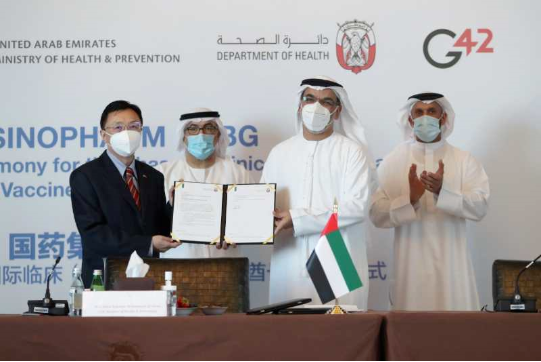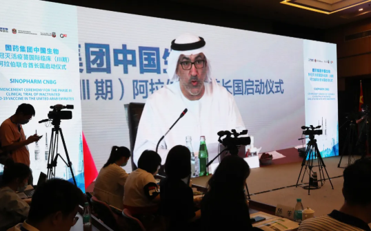 6月23日,国药集团中国生物新冠灭活疫苗国际临床(Ⅲ期)阿拉伯联合酋长国启动仪式在中国北京、武汉、阿联酋阿布扎比三地,以视频会议方式同步举行,阿联酋卫生部长向国药集团中国生物颁发了临床试验批准文件。