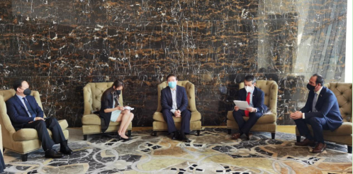 2020年8月24日,受国药集团董事长刘敬桢委托,国药集团生物制品事业部总裁朱京津在阿联酋阿布扎比会见智利外交部副部长(兼贸易部副部长)Rodrigo Yáñez先生和智利驻阿联酋大使Jorge Daccarett先生一行。Rodrigo Yáñez副部长代智利政府转交致国药集团刘敬桢董事长的信函,朱京津总裁代刘敬桢董事长向智利政府和人民表达友好慰问。
