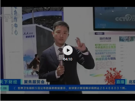 9月6日,央视二套《天下财经》记者来到国药集团中国生物在服贸会上的展位,对国药集团研制的全球唯一治疗新冠肺炎特效药特异性免疫球蛋白和全球首个新冠病毒灭活疫苗等进行了现场直播报道。