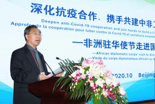 外交部非洲司司长吴鹏在致辞中表示,国药集团是中非卫生合作的先行者,成果遍及非洲大陆,也在第一时间向非洲提供了抗疫物资。新冠疫情暴发以来,中非风雨同舟,患难与共。中方将继续秉持“天下一家”的理念,为全球公共卫生事业尽责,也愿意继续深化中非抗疫合作,共建中非卫生健康共同体。与病毒搏斗,疫苗是最有效的武器。中国正在严格遵循国际规范,推进疫苗研发,中国已经正式加入“新冠肺炎疫苗实施计划”,中方愿在充分尊重非方意愿基础上,加强中非疫苗合作。