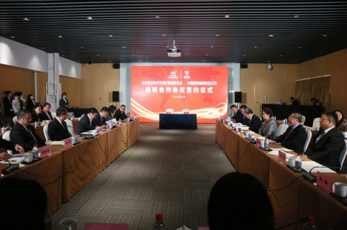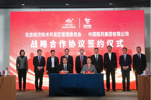 会谈结束后,由北京经开区管委会工委副书记张继红主持,在王少峰书记、刘敬桢董事长等领导的共同见证下,北京经开区管委会副主任陈小男、国药集团副总经理石晟怡分别代表双方签署战略合作协议。随后,还签署了《北京经济技术开发区管理委员会与国药集团药业股份有限公司共同推进企业深度合作协议》、《尚亦城(北京)科技文化集团有限公司与<中国新药杂志>有限公司策划举办中国创新药品牌活动合作协议》以及《北京亦庄国际投资发展有限公司与国药集团融资租赁有限公司战略合作协议》三个子协议。