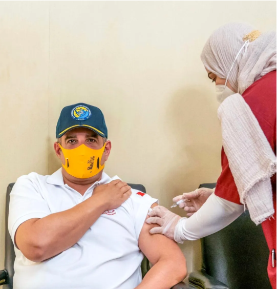 10月16日,阿联酋外交部长谢赫·阿卜杜拉·本·扎耶德·阿勒纳哈扬接种疫苗。