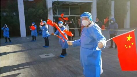 国务院国资委党委欢迎临床团队凯旋回国,国药集团党委积极做好英雄回家的各项准备,提前将隔离所需相关物资运送到隔离酒店,并专程在酒店外等待迎接凯旋队伍。