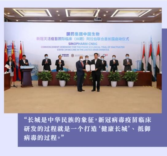 2020年7月15日,就在长城团队到达阿联酋的一周之内,阿布扎比卫生部长成为首位接种了国药中国生物疫苗的志愿者。是什么让这位政要对中国朋友如此信任,朱京津回忆说,“当会见部长时,他主动提出要第一个接种疫苗。他认为,在阿联酋开展Ⅲ期临床试验必定充满挑战,我信任国药集团的产品,愿意当这个‘第一人’。”