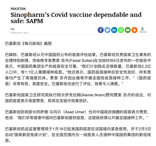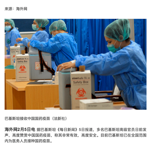 【人民日报海外网】巴基斯坦多位高官发声称赞中国国药集团疫苗安全可靠