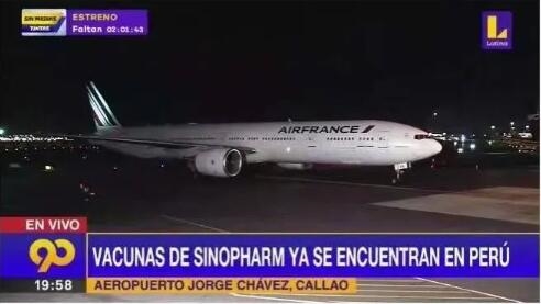 国药集团中国生物首批30万剂新冠疫苗2月7日晚到达秘鲁(图源:外媒)