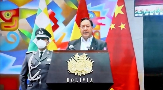 玻利维亚总统路易斯·阿尔塞在致辞中表示,正是中玻两国的友谊,让我们在这个时刻能够获得国药集团中国生物的疫苗。这个月玻利维亚能够开始大规模的新冠疫苗免疫注射,以尽快的方式来惠及玻利维亚人民,可以确定的是这个疫苗将为玻利维亚人民的健康做出极大贡献。这是一个共同的旅程,此次合作仪式落实了中玻双方对共同深化抗击疫情要进行合作这一承诺。向中国方面为玻利维亚人民,为玻利维亚获得疫苗做出努力和贡献的人们致敬。