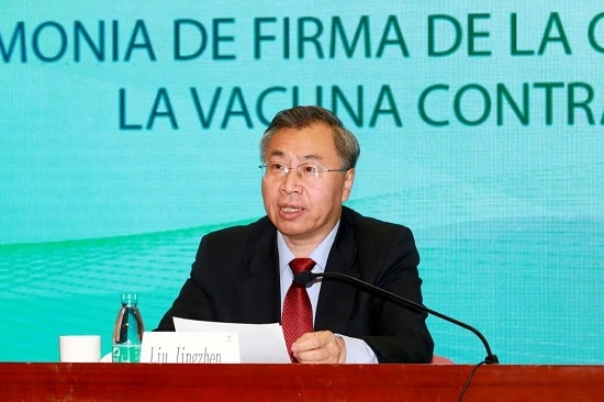 国药集团董事长刘敬桢在致辞中表示,在中国外交部等部委的指导和支持下,在阿尔塞总统的亲自推动下,玻利维亚国家药品与卫生技术局已正式批准国药集团中国生物新冠疫苗注册上市,这是对我们疫苗安全性和有效性的充分信任,也是落实两国元首共识的具体行动,开启了两国在生命健康特别是生物医药领域合作的新篇章。相信国药集团中国生物新冠疫苗一定能够为玻利维亚的疫情防控提供有力支撑,为玻利维亚人民构筑起坚实的健康屏障。