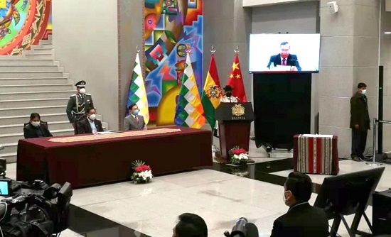 2月11日大年三十当晚,国药集团与玻利维亚新型冠状病毒疫苗合作签约仪式在北京和拉巴斯以视频会议形式举行。