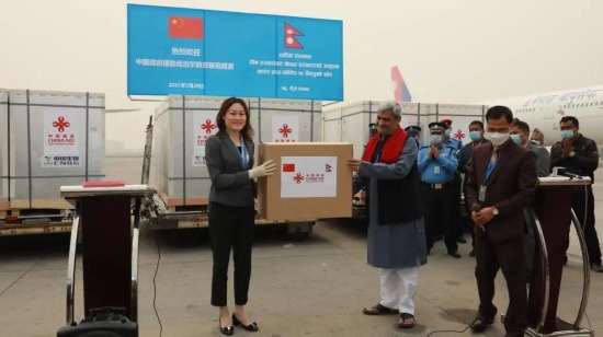 中国援助尼泊尔的一批国药集团中国生物新冠疫苗运抵尼泊尔首都加德满都,尼泊尔卫生与人口部长特里帕蒂(HridayeshTripathi)和中国驻尼泊尔大使侯艳琪到机场迎接。