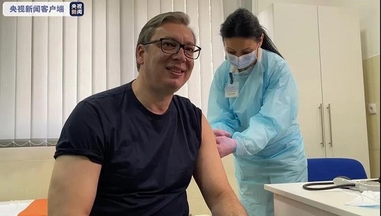 塞尔维亚总统武契奇在该国东部的马伊丹佩克市(Majdanpek)鲁德纳格拉瓦村(RudnaGlava)的卫生防疫站,接种了第一剂来自中国国药集团的新冠灭活疫苗。武契奇在接种后说:“感觉很棒,似乎什么都没有发生。”