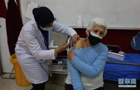 4月1日,约旦河西岸城市拉姆安拉的居民接种中国援助的国药集团新冠疫苗。(来源:新华网)