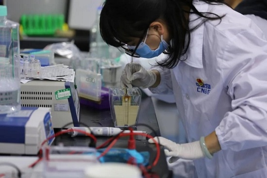 国药动保研发中心基础研究部杆状病毒表达平台研究员,正进行猪瘟病毒基因表达蛋白的纯化鉴定。