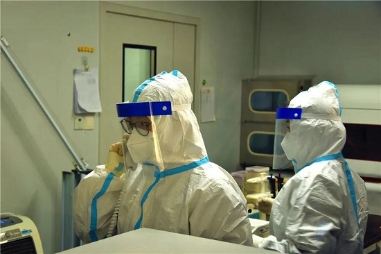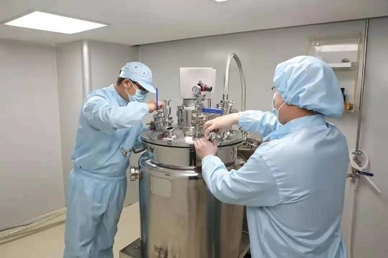 国药医工总院下属益诺思公司康南路实验室研究人员正在开展工作。