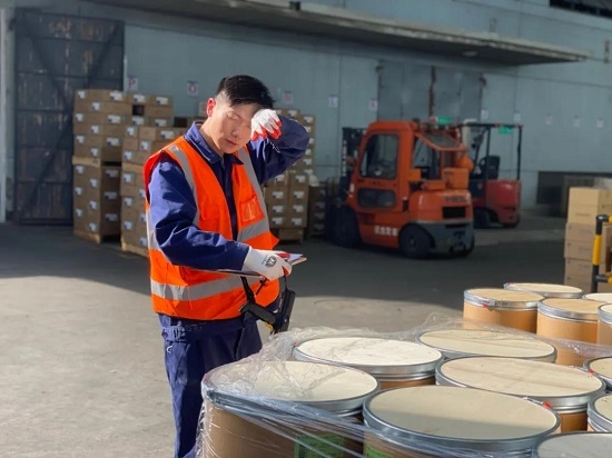 国药试剂上海仓储业务部验收员,在烈日下核对送货信息,做到“七对二完好一清晰”,保证商品入库无差错。
