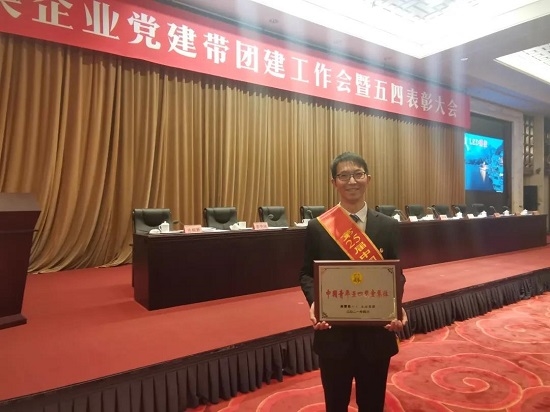 国药集团中国生物武汉生物制品研究所团委书记邹江龙代表所在集体领取中国青年五四奖章。