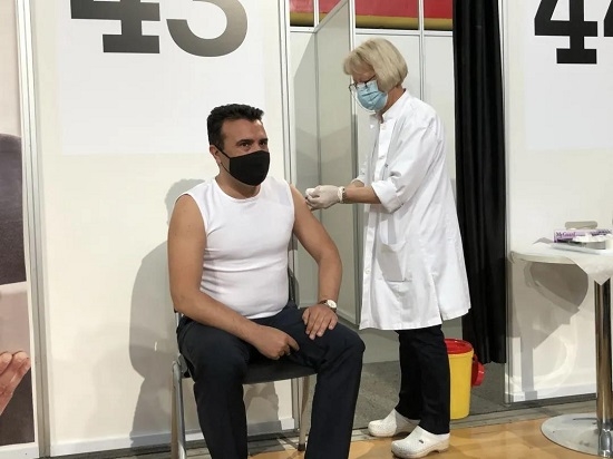 当地时间5月6日,北马其顿总理扎埃夫在首都斯科普里接种了第一剂中国国药集团新冠疫苗。