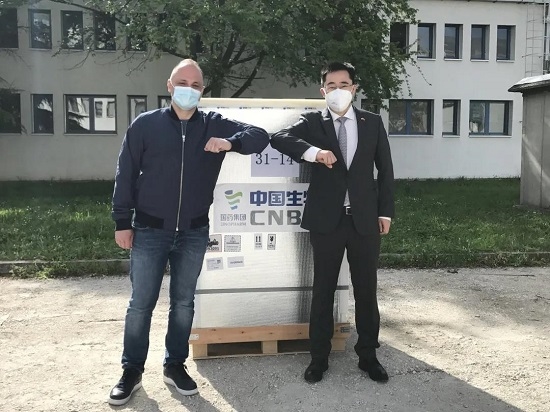 当地时间4月29日下午2时,中国政府援助波黑的国药集团新冠疫苗运抵波黑首都萨拉热窝。波黑民政部长古黛列维奇,中国驻波黑大使季平、国药集团所属国药国际有关代表等出席了捐赠仪式。