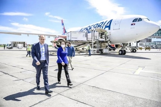 5月22日,塞尔维亚采购的新一批国药集团新冠疫苗运抵贝尔格莱德。陈波大使、塞卫生部长伦查尔赴机场迎接。