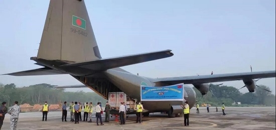 当地时间5月12日上午,中国援助孟加拉国的中国国药集团新冠疫苗搭乘孟加拉国空军专机抵达孟加拉国首都达卡孟加拉之友空军基地。