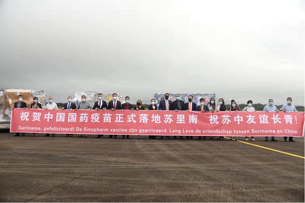 苏里南是美洲地区首个将中国农历新年确定为全国永久性公共节假日的国家,是中国的好朋友、好伙伴。万水千山总是情,无论是去年的抗疫物资援助,还是此次国药新冠疫苗援助,都是中苏深厚友谊的具体体现。