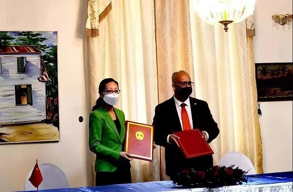 石晟怡对苏里南政府给予中国国药集团和国药产品的信任表示衷心感谢。作为全球第一家研制出新冠疫苗的企业,国药集团已向数十个国家和地区提供国药新冠疫苗,为各国的防疫抗疫工作做出了积极贡献。她表示,国药集团具有医药卫生全产业链优势,集成能力强,协同能力优。以国药集团加勒比公司为支点,我们愿与苏方开展更加深入、全面的医疗卫生合作,助力苏里南整体卫生水平的提升。