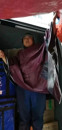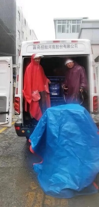 国药河南的药品配送车到达禹州某人民医院时,业务员赵敖看到降雨量激增,二话没说和马永杰、王青辉两位同事顶着大雨,趟着积水,把药品安全运送到了医院药库,并帮医院完成了药品入库。随后,他们深一脚浅一脚的赶到了禹州市另一家医院,踩着滑腻的泥水,把药品及时运送到了医院库房,确保了禹州人民的用药需求。