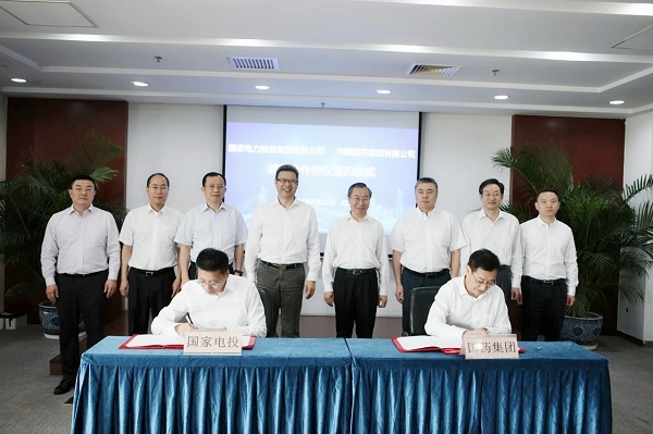 会谈结束后,双方举行了战略合作框架协议签约仪式。国药集团董增贺副总经理、国家电投徐树彪副总经理代表签署。国药集团刘敬桢董事长、国药中生胡立刚财务总监、国药国际陈玉栋副总经理、集团总部安全环保与质量管理部马利敏主任;国家电投钱智民董事长、琚立生行政总监、侯学众重大项目总工程师、基金公司王锐兵总经理见证签约。国药集团总部相关部门及相关子企业负责人参与会谈及签约活动。