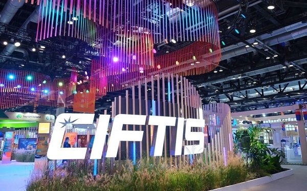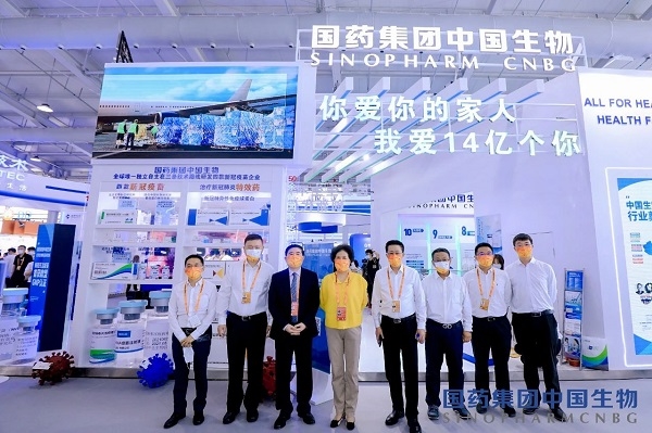 国药集团董事长刘敬桢、副总经理曾兵、副总经理石晟怡与阿联酋驻华大使阿里扎希里在国家会议中心展区