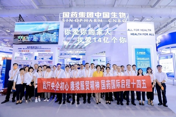 国药国际一行人员重点参观了设在健康卫生服务展馆的国药集团中国生物展位。本次服贸会,国药集团中国生物携“可诊”领域的3款诊断试剂,“可治”领域的2款特效药(特免球蛋白、单克隆抗体)以及在“可防”领域3条技术路线上研发的4款新冠疫苗再次亮相服贸会,其中抗变异毒株的二代疫苗和两款特效药物更是全球首发。