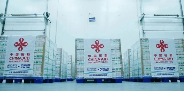 2021年9月17日,中国政府向联合国维和人员捐赠新冠疫苗交付仪式以视频方式举行。17日上午,用于此次捐赠的30万剂国药集团中国生物新冠疫苗在北京生物制品研究所出库启运。