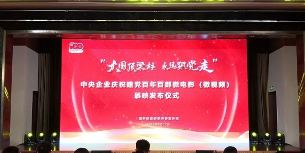 近日,“大国顶梁柱 永远跟党走”中央企业庆祝建党百年百部微电影(微视频)展映发布活动在京举办。活动现场发布了初心使命、大国重器、敬业奉献、社会责任等四个主题100部优秀作品并展播了四部优秀作品。国资委党委宣传部、中央宣传部宣教局、党史学习教育中央第十八指导组、中央新影集团有关负责同志、国资委党委党史学习教育领导小组办公室成员出席活动。