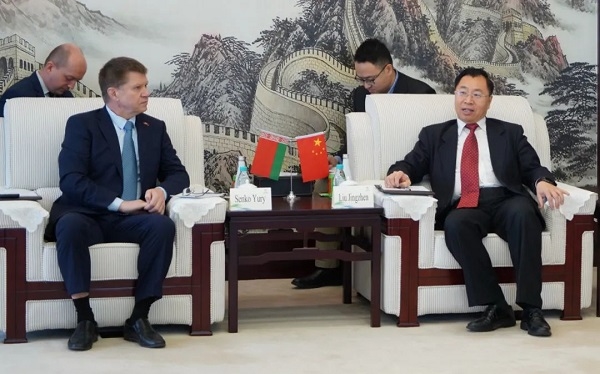 白俄罗斯驻华使馆高级参赞Kharlap Tatyana、使馆参赞Sokol Roman、使馆一秘Podkovyrov Aleksandr,国药集团国际合作部、国药中生、国药国际等有关人员参加会见。