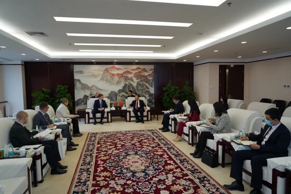 刘敬桢董事长对先科·尤里大使一行来访表示热烈欢迎。刘敬桢介绍了国药集团在抗击新冠肺炎疫情中围绕“可诊、可治、可防”三个方面所取得的重要成果,并希望双方通过交流沟通,进一步深化合作愿景,推动双方在防疫、医药等更多领域加快合作落地,为白俄罗斯抗击疫情提供支持。刘敬桢对白方的合作意向表示全力支持,国药集团愿全面加强与白方在新冠疫苗合作方面的工作部署,为双方在卫生健康领域合作带来新动力。