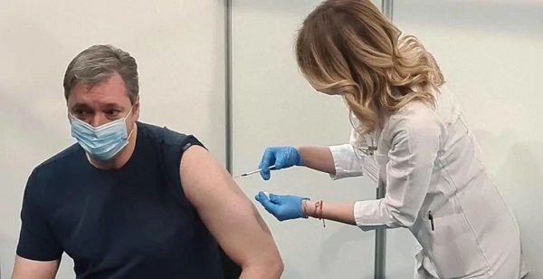 塞尔维亚总统于4月6日和27日接种了第一和第二剂国药集团中国生物新冠灭活疫苗。周日,他在贝尔格莱德最大的展览中心接种了疫苗,那里有一个大规模的疫苗接种中心。他感谢了医护人员自2020年12月24日以来在塞尔维亚一直所作的疫苗接种的努力,并指出这次接种“甚至都没有打针的感觉。”