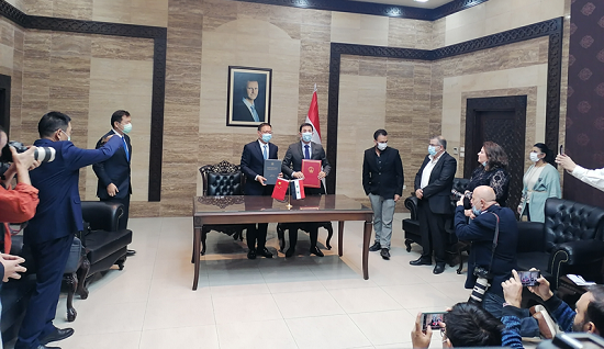 当地时间11月14日,中国政府援助叙利亚的50万剂国药新冠疫苗交接仪式在叙利亚卫生部举行,叙卫生部长加巴什和中国驻叙大使冯彪共同出席仪式。