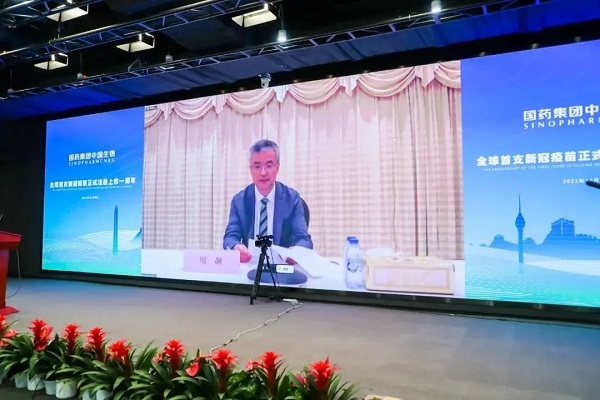 外交部国际经济司副司长郭学军在视频致辞中表示,一年来,中国政府与企业积极落实习近平主席关于将中国疫苗作为全球公共产品的重要宣示,已向120多个国家和国际组织提供超过18.5亿剂疫苗,其中很大一部分属于国药疫苗,中国政府对外捐赠的首批疫苗也是国药疫苗。有的国家将国药疫苗的抵达比喻为“隧道尽头的亮光”。国药集团既以可负担的价格对外出口疫苗,又向发展中国家捐赠疫苗,还同阿联酋等多个国家联合生产疫苗,让国药疫苗不仅在中国制造,也在世界制造。这体现了国药集团作为一家国际化企业的国际责任担当,是对中国倡导的人类卫生健康共同体理念的生动实践。