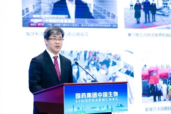 国药集团董事长刘敬桢在致辞中指出,作为中国最大的医药健康企业,抗疫国家队、主力军,国药集团是全球唯一独立自主在3条技术路线上研发4款新冠疫苗的企业,新冠灭活疫苗在全球10个国家注册上市,112个国家、地区及国际组织批准使用,并通过了世卫组织紧急使用认证及欧盟GMP认证,年产能超过70亿剂,目前全球生产供应疫苗已达25亿剂,成为获批国家数最多、供应范围最广、接种量最大、安全性最好、产能最充足的新冠疫苗。