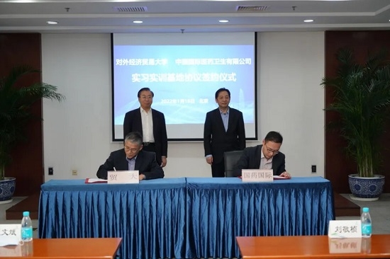 2022年1月18日,国药集团党委书记、董事长刘敬桢与对外经济贸易大学校长夏文斌在国药集团举行会谈,双方签署战略合作协议及专项协议。