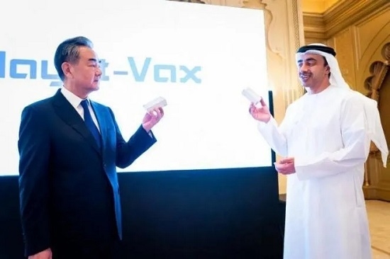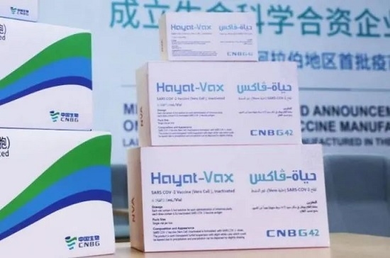 2021年3月28日,中国与阿联酋合作新冠疫苗原液灌装生产线项目启动仪式,在中国和阿联酋同步举行。中国国务委员兼外交部长王毅,阿联酋内阁部长兼外交与国际合作部长谢赫•阿卜杜拉•本•扎耶德•阿勒纳哈扬在阿联酋阿布扎比仪式现场,启动并连线国药集团中国生物与G42集团合作新冠疫苗原液灌装生产车间,共同见证阿联酋与阿拉伯地区首批新冠灭活疫苗正式分装下线,国药集团董事长刘敬桢视频出席仪式并致辞。