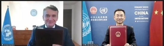 2021年9月17日,中国政府向联合国维和人员捐赠国药集团中国生物新冠疫苗交付仪式以视频方式举行,中国常驻联合国副代表耿爽与联合国助理秘书长桑德斯分别代表中国政府和联合国签署了疫苗援助交接证书,桑德斯代表古特雷斯秘书长和联合国系统向中国政府的慷慨援助表示感谢。同日,用于此次捐赠的国药集团新冠疫苗在北京启运,优先用于保障在非洲任务区执行任务的联合国维和人员。